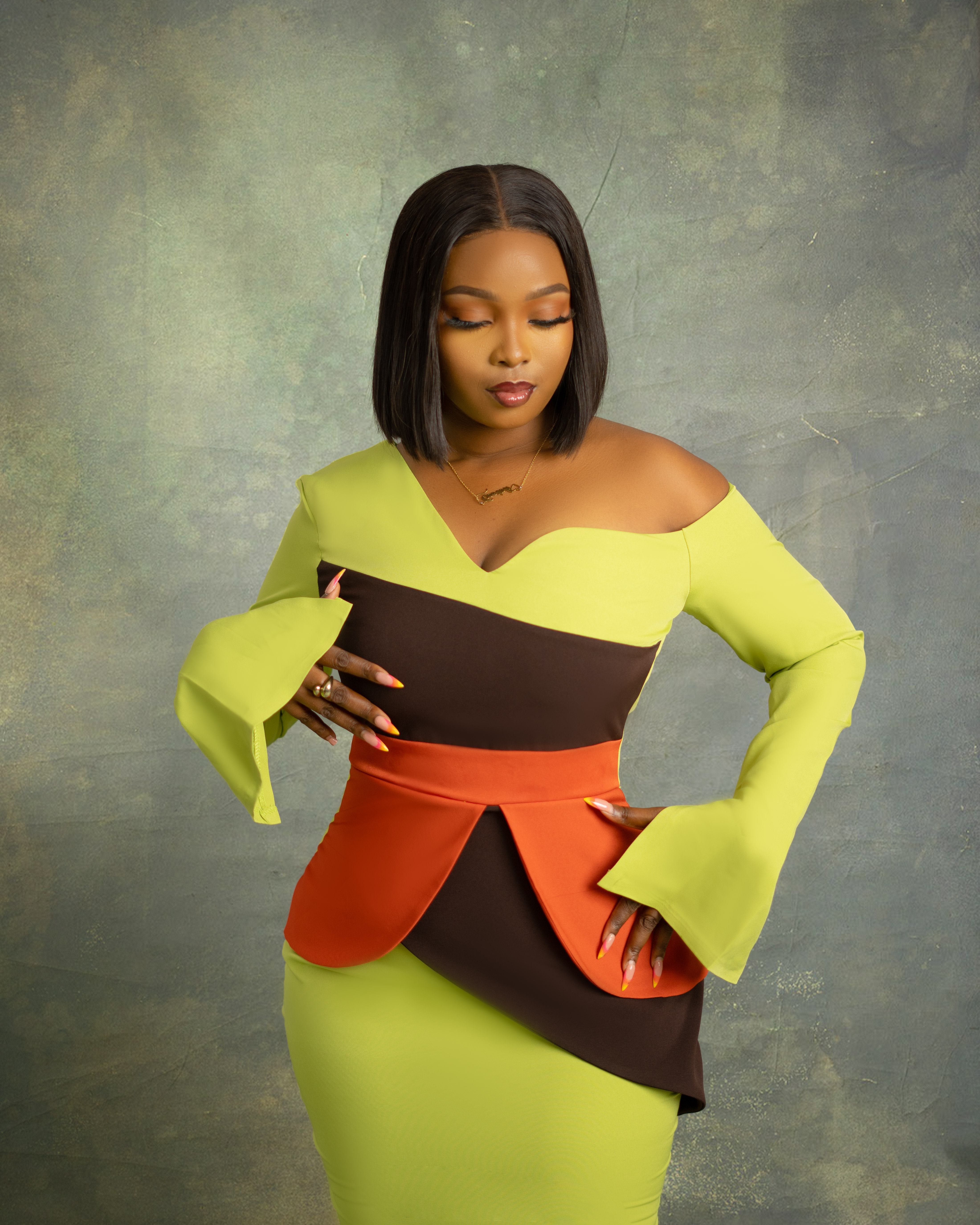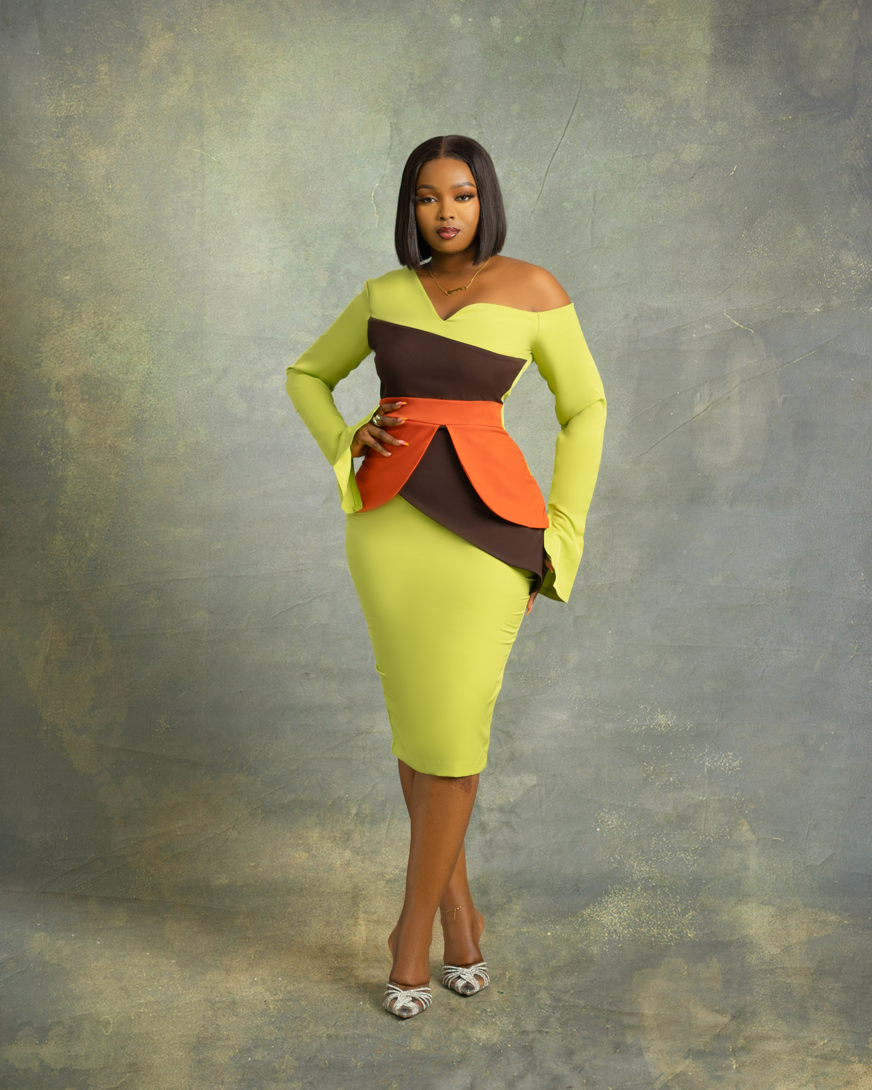 Radiate confidence in Aurora’s Charm, a bold fusion of elegance and modern allure. Featuring a striking color contrast, an asymmetrical neckline, and a sculpted peplum detail, this dress is designed for the woman who commands attention. Perfect for exclusive soirees and unforgettable moments.